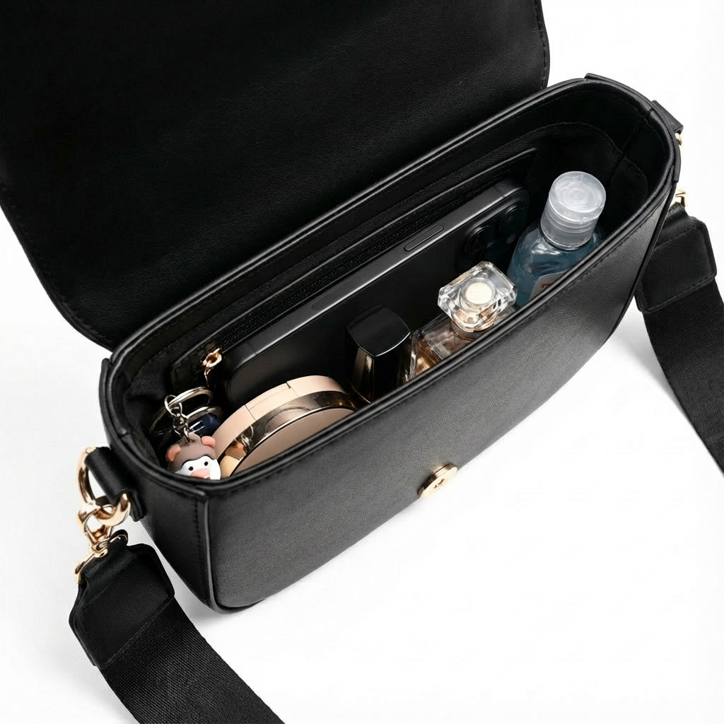 Die Halfmoon Bag überzeugt auch im Inneren: Sie bietet ein geräumiges Hauptfach mit zwei Innenfächern - eines mit Reißverschluss für maximale Sicherheit und ein offenes Innenfach für schnellen Zugriff.