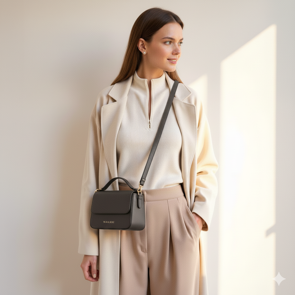 Die Nalua Handtasche kombiniert minimalistisches Design mit einer klaren Eleganz und ist ein zeitloser Klassiker in deiner Garderobe. Gefertigt aus hochwertigem, glattem PU-Leder, überzeugt sie mit ihrer schlichten Silhouette und goldfarbenen Details, die ihr einen luxuriösen Touch verleihen. Der schlichte anthrazit Ton in Kombination macht die Nalua zu einem vielseitigen Accessoire, das sowohl im Alltag als auch zu besonderen Anlässen perfekt passt.