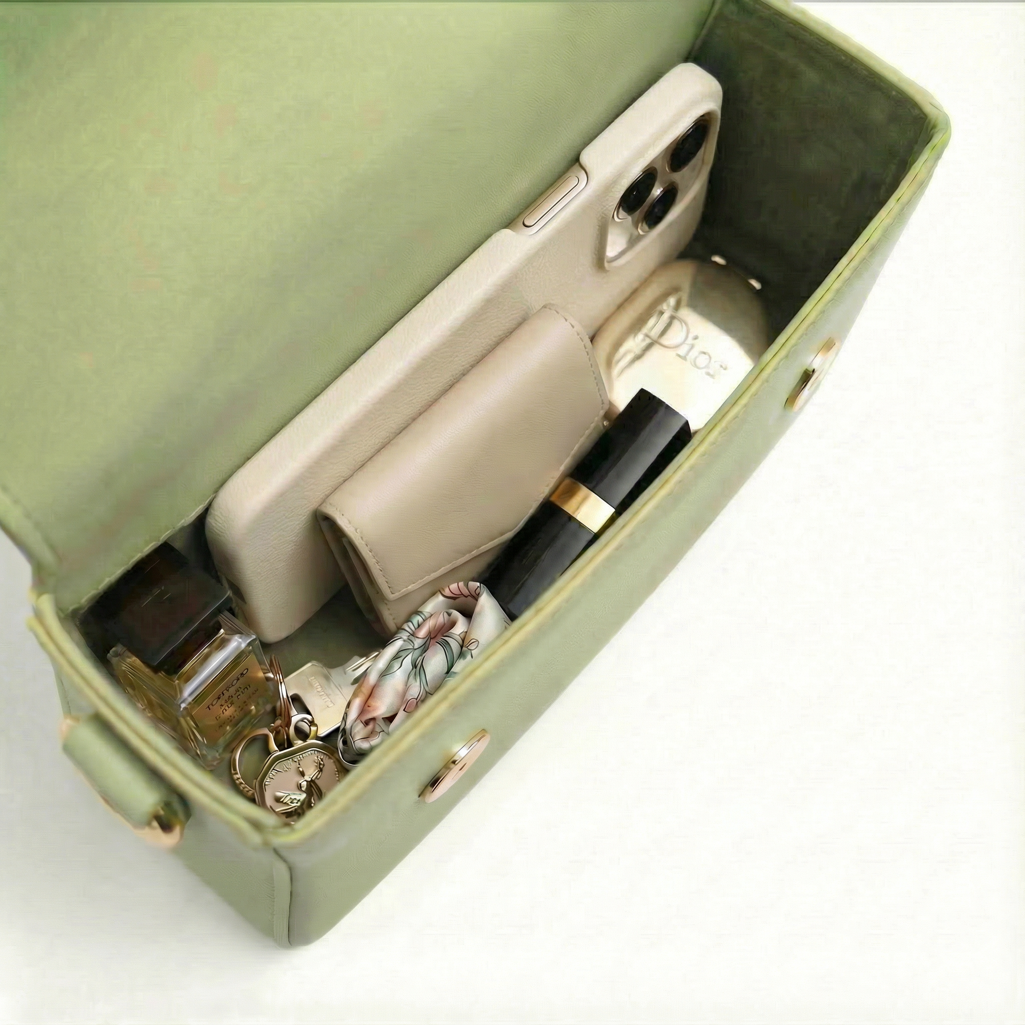 Ausgestattet mit einem kurzen Griff kannst du die Tasche klassisch in der Hand tragen, während der abnehmbare und längenverstellbare Schultergurt dir die Möglichkeit gibt, sie auch als Crossbody zu nutzen. Die durchdachte Innenaufteilung bietet dir ausreichend Platz für deine Essentials und sorgt dafür, dass alles gut organisiert bleibt.
