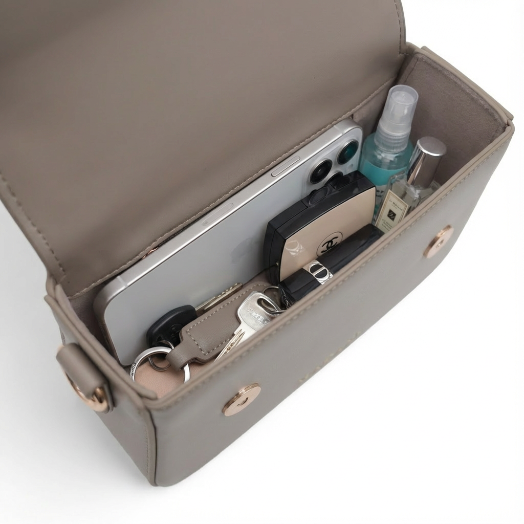 Die Nalua Handtasche kombiniert minimalistisches Design mit einer klaren Eleganz und ist ein zeitloser Klassiker in deiner Garderobe. Gefertigt aus hochwertigem, glattem PU-Leder, überzeugt sie mit ihrer schlichten Silhouette und goldfarbenen Details, die ihr einen luxuriösen Touch verleihen. Das dezente Taupe macht die Nalua zu einem vielseitigen Accessoire, das sowohl im Alltag als auch zu besonderen Anlässen perfekt passt.