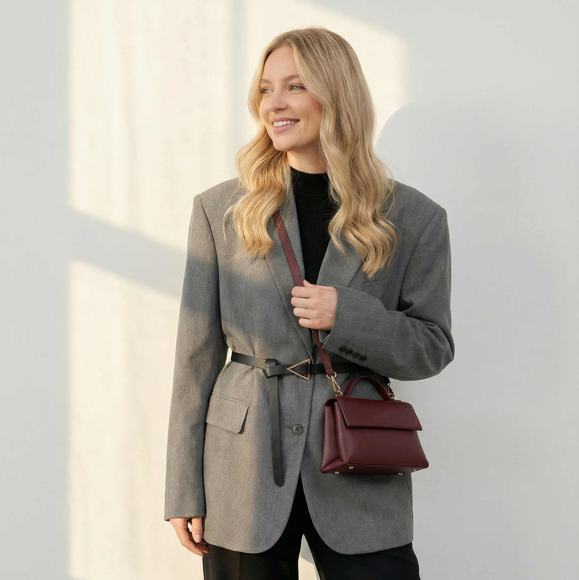 Mit ihren kompakten Maßen von 23 x 8 x 14 cm bietet NANI trotz schlanker Silhouette viel Stauraum. Zwei separate Hauptfächer mit Reißverschluss sorgen für Übersichtlichkeit und Sicherheit, ergänzt durch je ein Innenfach – eines mit Zipper, eines offen – für kleine Essentials. Der praktische Magnetverschluss ermöglicht gleichzeitig schnellen Zugriff. Die Tasche wird mit einem 1,8 cm breiten, längenverstellbaren Taschengurt (109 –122 cm) geliefert, der bequemes Tragen sowohl als Schulter- als auch als Crossbody-Bag erlaubt.