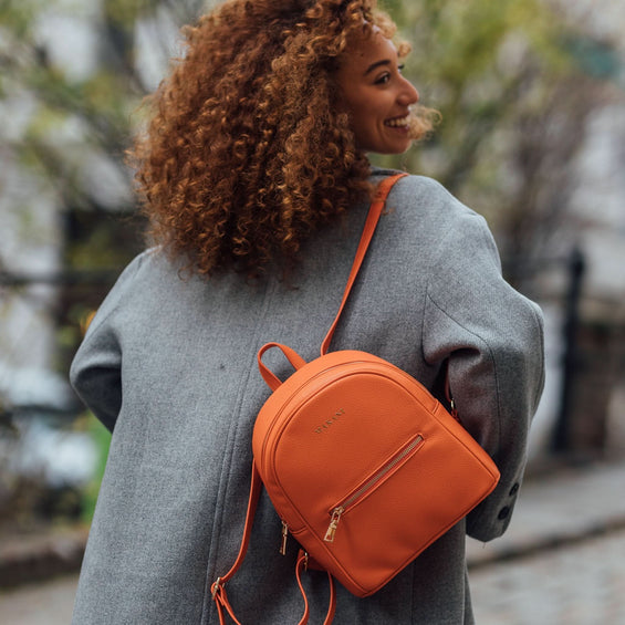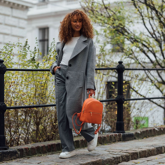The MAKANI backpack upgrades every outfit and is perfect for your city trip. The brass-colored zips and zips are particularly impressive. High-quality materials are used in production, the backpack is made of vegan leather. This not only proves to be very robust, but also leaves a pleasant feeling when you first touch it. At the same time, the practical use of the backpack leaves nothing to be desired. In everyday life, the model offers plenty of space for important accessories, especially in the large main compartment, the wallet, smartphone or even a drinking bottle can be comfortably accommodated. The practical zipper allows for secure closure. Of course, the wearing comfort must not be neglected. That's why the backpack has adjustable shoulder straps and an additional handle, which makes it easy to carry in your hand. Finally, the backpack has a small compartment on the front, which also has a zipper.