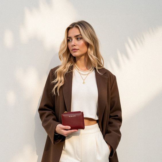 Klein, praktisch und richtig stylish – das Liam Wallet ist genau das, was du brauchst, wenn du Minimalismus und Eleganz liebst. Das hochwertige PU-Leder und das goldene Makani-Logo machen sie zu einem echten Hingucker, der sich perfekt in jede Handtasche schmiegt.