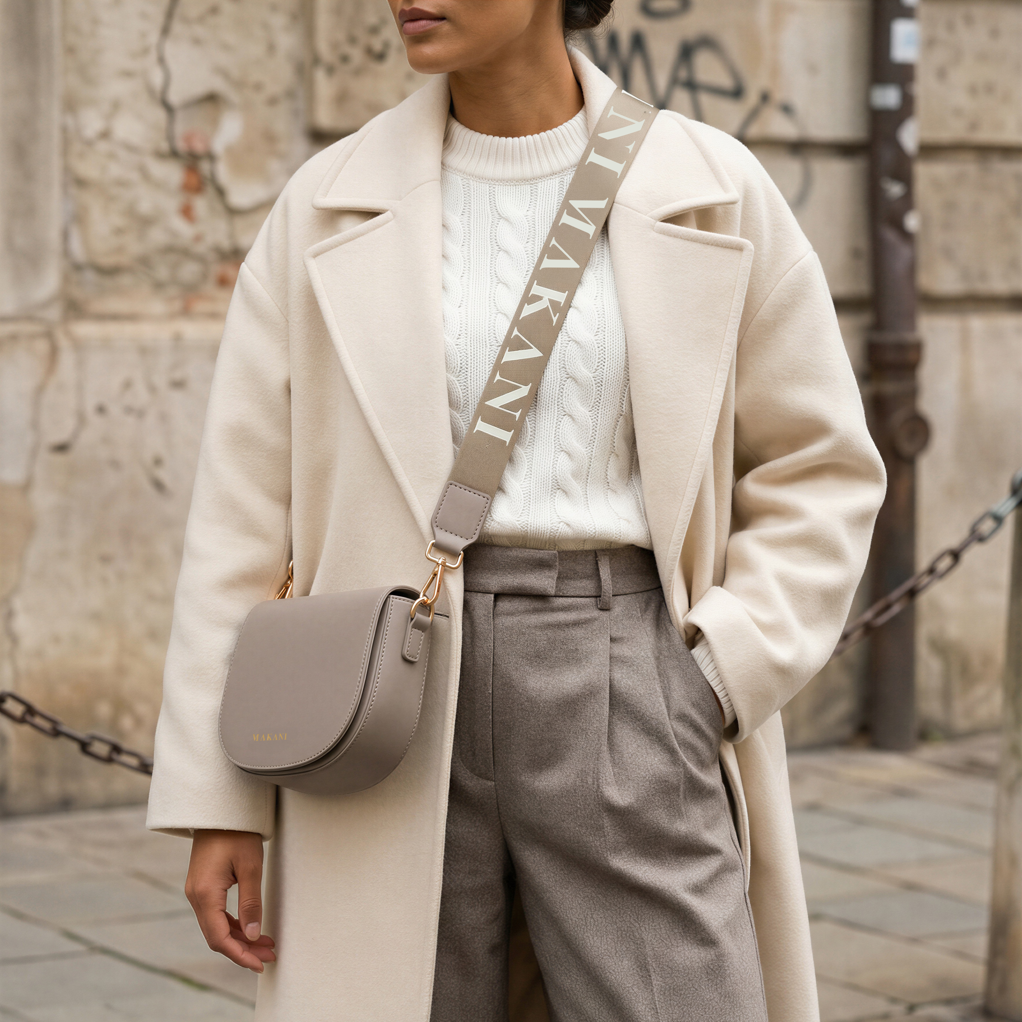 Die Halfmoon Bag, ein atemberaubender Mix aus Eleganz und Funktionalität, ist dein idealer Begleiter für jeden Anlass. Hergestellt aus 100% hochwertigem veganem PU Glattleder, kombiniert sie Nachhaltigkeit mit modischem Stil. Ihre goldenen Details aus Messing verleihen ihr einen Hauch von Luxus und Glanz.