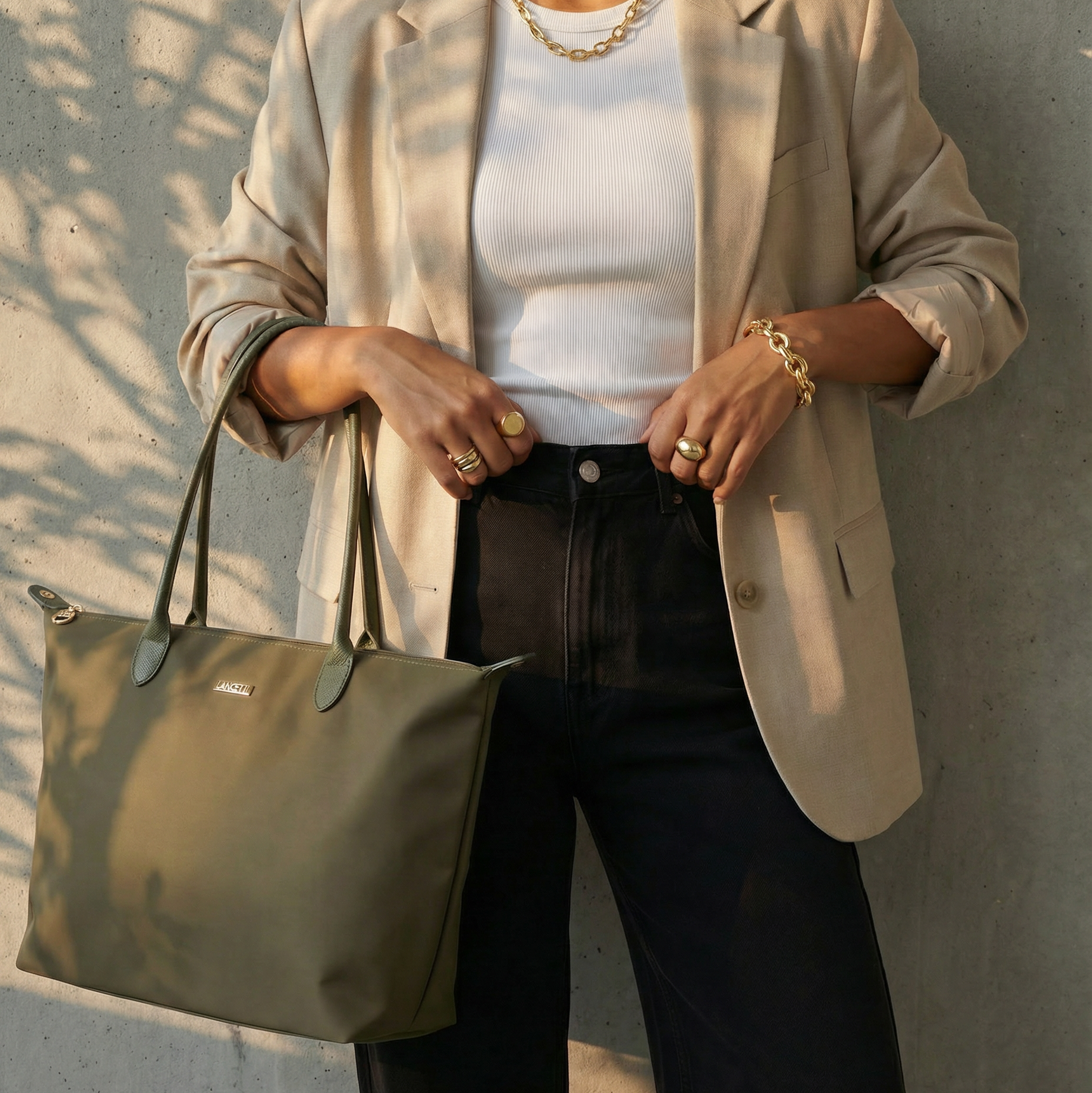 Unsere Nayla Handtasche vereint schlichte Eleganz mit praktischer Vielseitigkeit. Ihr modernes, minimalistisches Design in einem dezenten olive macht sie zu einem stilvollen Begleiter für jeden Tag. Das hochwertige Material überzeugt durch seine leichte, strapazierfähige Beschaffenheit und sorgt dafür, dass die Tasche nicht nur gut aussieht, sondern auch lange hält.
